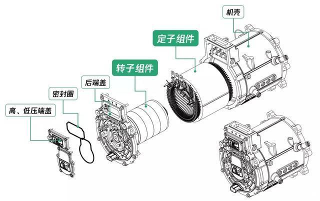 永磁同步电机,主要由定子组件、转子组件以及其他辅助件组成。