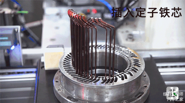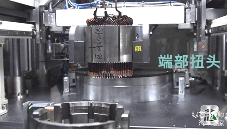 Hair-pin绕组制造过程非常复杂。需要先将导线,制作成发卡的形状,然后通过自动化插入到定子铁芯槽内,然后进行端部扭头和焊接。