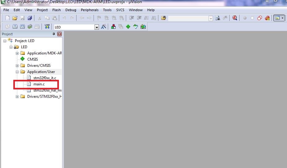 点击“Open Project”,打开uVision 5 开发环境,打开Main.c 主程序