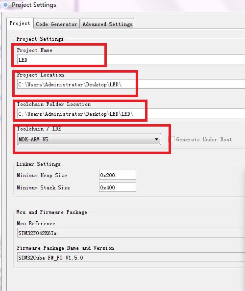 弹出的对话框,按英文提示填入必要信息以及选择keil相应的开发环境