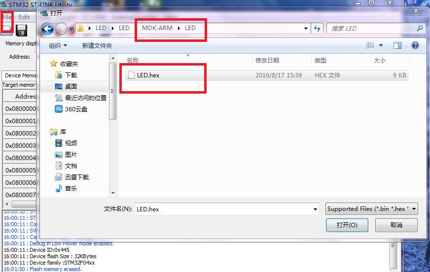 点击File->Open File,打开keil中生成的hex文件
