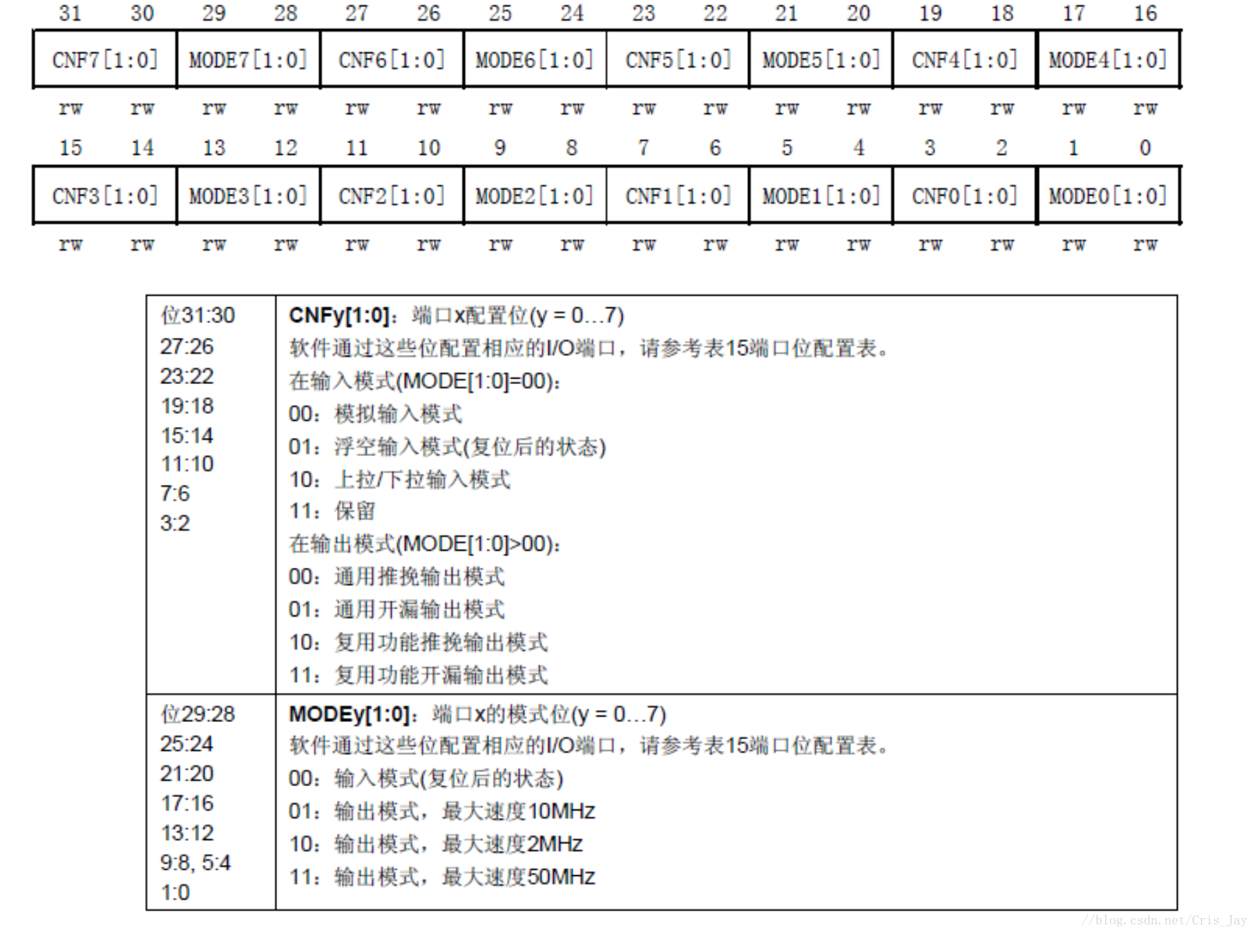 CHL、CHR :端口配置寄存器(32位)