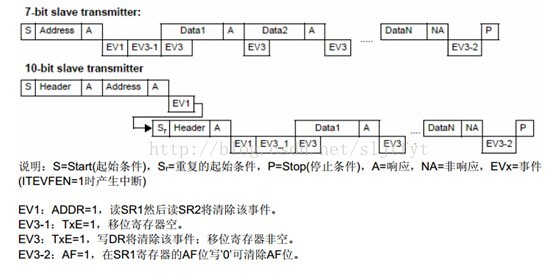 stm32 I2C主机发送功能在网上有很多例程,调试也很容易,从机发送数据的介绍很少,鉴于本人刚开始调试单片机程序不久,花了一整天也没调试通,最后在部门领导的帮助下,通过示波器及单步调试程序,查看寄存器状态值,终于实现了。下面主要介绍下从机发送数据注意事项。(附带例程)