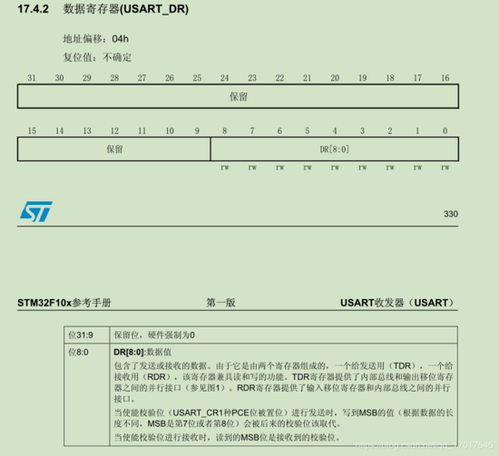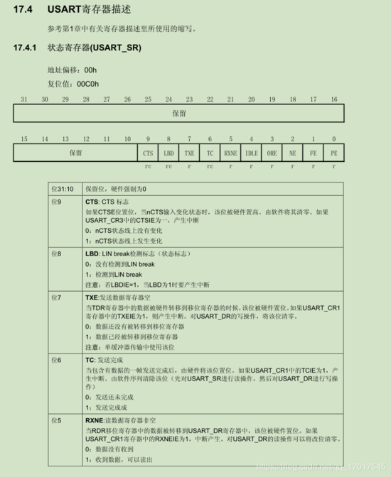 RXNE 位被置位。它表明移位寄存器的内容被转移到 RDR 。