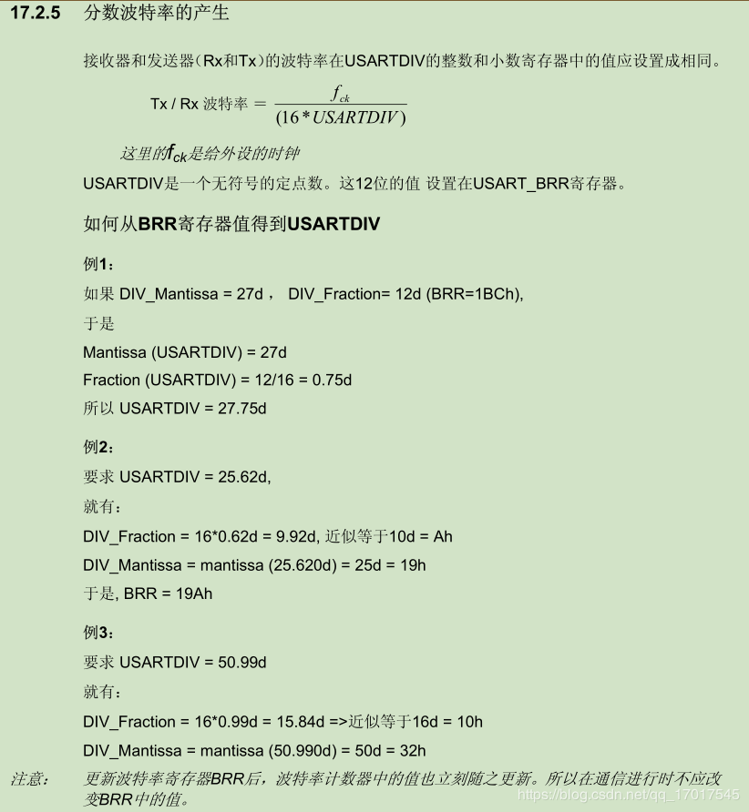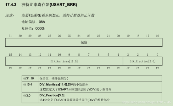5.利用波特率寄存器 USART_ BRR 选择希望的波特率。