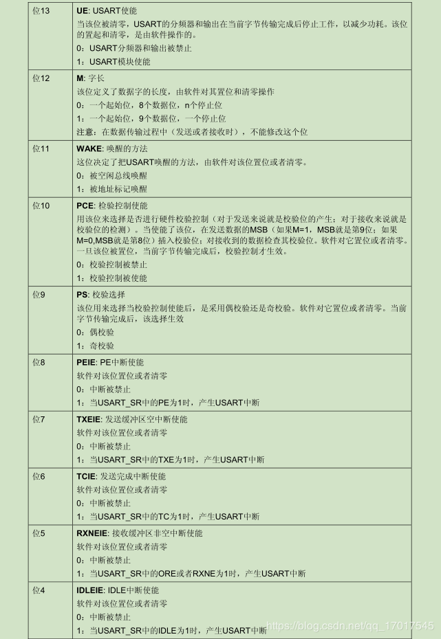 1.通过在USART_CR1寄存器上置位UE来激活USART