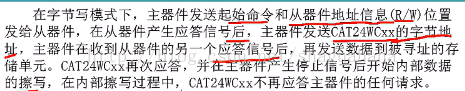 (3)、每发送一个字节数据后CAT24WCxx产生一个应答位,并将字节地址低位加1,高位保持不变。