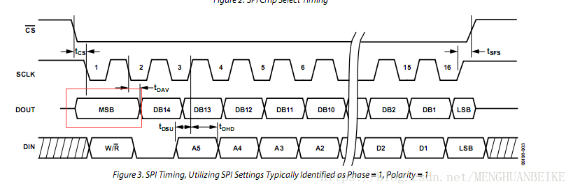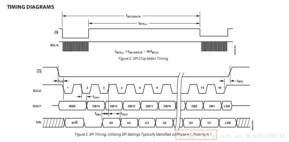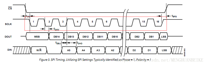 从时序图可知该芯片的相位CPHA=1(时钟空闲时高电平),极性CPOL=1(上升沿采样)