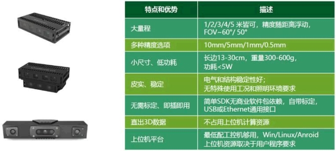 图漾科技的部分产品及规格指标