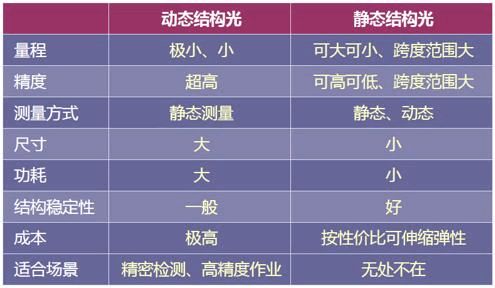 动态结构光和静态结构光特性比较