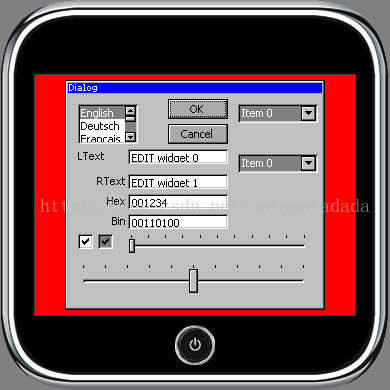 通过GUI_TOUCH_StoreState()或GUI_TOUCH_StoreStateEx()对上面的结构体定期录入,即可实现触摸屏的状态录入,录入后的工作就交给emwin自己处理了,我们只需要在相应的控件回调函数中补入自己想要的功能就行,很方便。