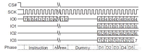 SDR模式:QSPI驱动IO0~IO3在SCLK的下降沿进行数据变化。
