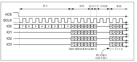 DDR模式:在该模式下,指令阶段在SCLK下降沿发送数据,而在地址,交替字节,数据阶段在SCLK上升沿和下降沿均发送数据。