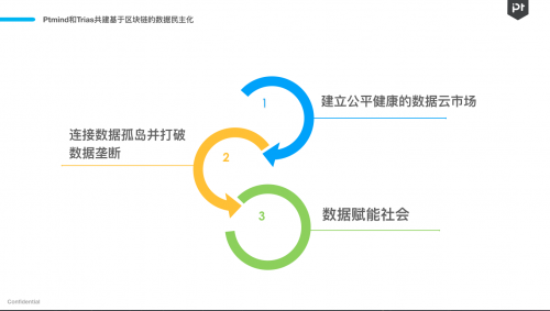 Ptmind铂金智慧 CEO 郑远表示,已经和 Trias 达成战略合作,未来将通过区块链技术构建一个去中心化、透明公开、公平、保障数据安全的数据云生态,让数据拥有者以更低的信任和对接成本,参与到数据的自由共享和交易中。