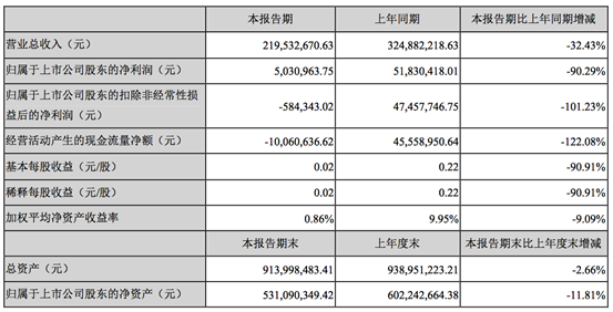 劲拓股份发布2019年半年度报告,公司实现营业总收入21,953.27万元,较上年同期下降32.43%;实现归属于上市公司股东的净利润503.10万元,较上年同期下降90.29%。