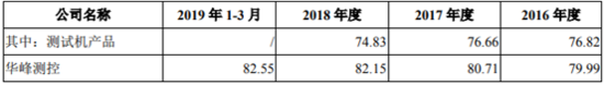 在业绩状况方面,2016至2019年第一季度,华峰测控的营业收入分别为1.12亿元、1.49亿元、2.19亿元、5978.05万元,净利润分别为4120.82万元、5281.14万元、9072.93万元、2323.53万元,业绩逐年提升。