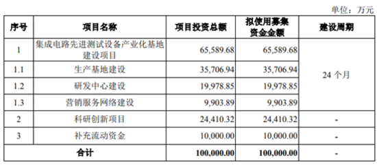 为提高研发实力,华峰测控拟发行股票数量不超过1529.63万股,募集资金10亿元用于集成电路先进测试设备产业化基地建设项目、科研创新项目和补充流动资金三大项目。