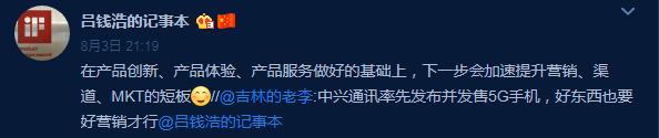 当然,中兴并不是不知道自己产品营销不上心,中兴高管吕钱浩表示公司会优先把产品创新、产品体验、产品服务做好,下一步才会加速提升营销、渠道等短板。