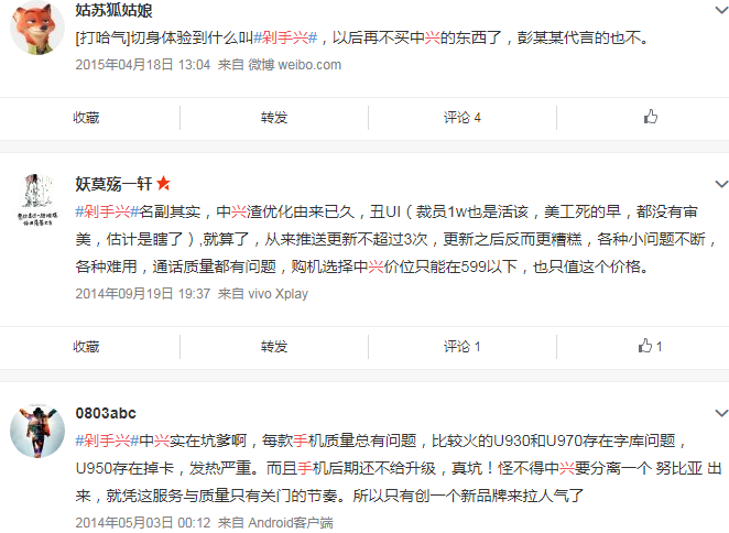 在以小米为代表的互联网手机品牌崛起后,中兴虽然推出过U988S、红牛V5、小鲜4等机型应对,无奈系统优化差、更新慢等老毛病改不掉,让消费者看不到它改变的希望,它始终还是那个“剁手兴”。