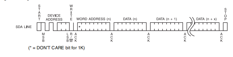 图中的"WORD ADDRESS"指的是主机往AT24C02存储芯片写入的首地址,后面DATA就是写入的内容。不是所有的iic从设备都有这个,比如是音频的设备那么就不存在写入地址。具体是要根据iic从设备的数据手册上的功能通信协议来定。