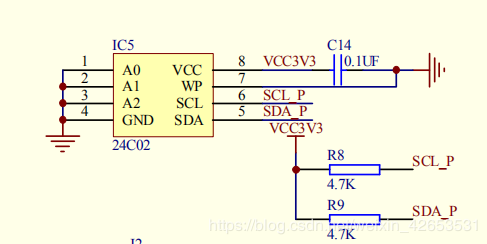 由上面两图得知该设备地址为0xA0,第0bit是读写方向位。 这里SCL和SDA接了上拉电阻,然后分别接到stm32f103c8t6的PB6、PB7。