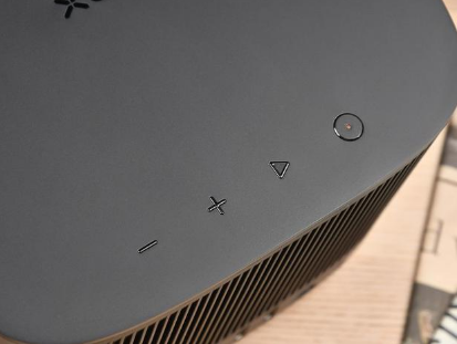极米H3的遥控器依旧是经典的12键设计,小巧简约的同时看起来也更有科技感。机器依旧采用哈曼卡顿原装音响,音腔体积相较H2提升了17.9%,低频量感更足,整机的声音效果也更有优势。