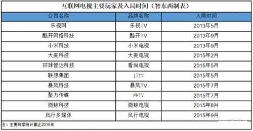 ▲互联网电视主要玩家统计