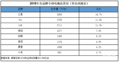 ▲2018年全球电视出货量前八名
