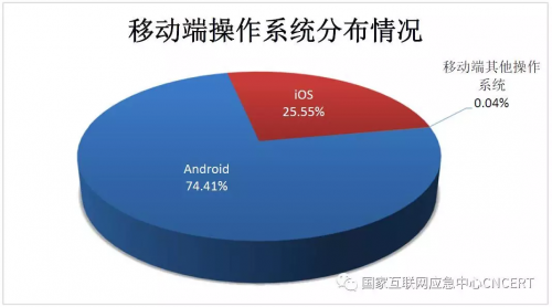 根据国家互联网应急中心发布的数据显示,目前在智能手机的操作系统市场份额占比中,Android操作系统占比最高,为70%以上,iOS操作系统占比25%左右,其他操作系统的份额几乎可以忽略不计。
