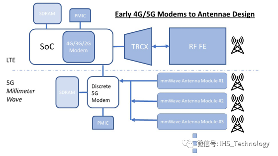 图 2 – 采用分立式5G调制解调器和射频前端的第一代5G设计