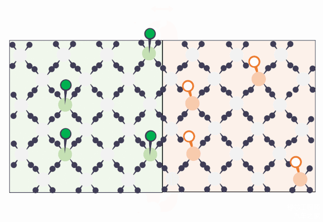在两种半导体的交界线,有趣的事情发生了。交界处的空穴和电子,在相互吸引下,“牵手”成功。