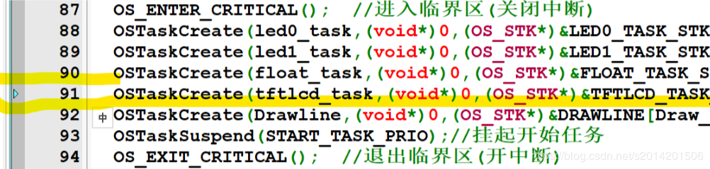 上面建立了一个TFTLCD的任务,液晶屏任务在运行的时候要占用大量的内存资源,所以TFTLCD_STK_SIZE 定义成8字节(2*4)