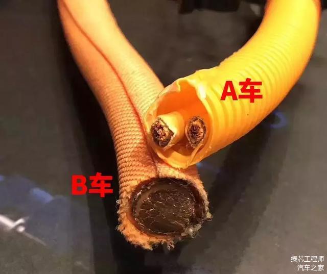 小编在网上看到一篇文章,将两台车的两种高压线放到一起拍照,结论是“A车的高压线束细,质量差”。