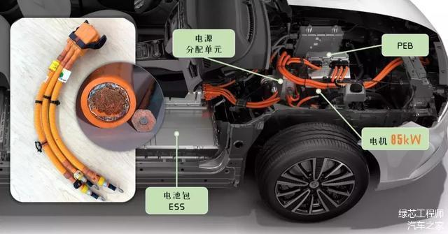 车上用到的高压线束有3mm²、4mm²、16mm²、25mm²、35mm²、50mm²甚至70mm²等等很多种。以某纯电动车型为例,同在近400V高压下,85kW电机所用的高压线,与6.6kW充电器所用的高压线当然不同 ——“粗细”即铜线截面积的差别,这也显而易见。