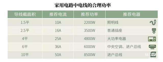 反过来,这就意味着,越粗、“平”数越大的导线可以承受更大的电流,相同电压下承受更大的功率。家用电的电压为220V,根据用电器的额定电流和额定功率选出最适合的电线。