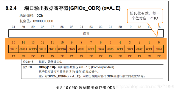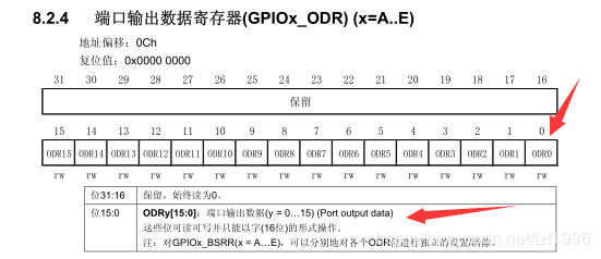 ODR偏移是0x0C,如果要找GPIOB的ODR寄存器,则起始地址0X4001 0C00+偏移0x0C