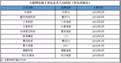 互联网电视主要玩家统计。