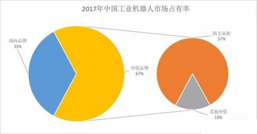 2017年开始,国内并联机器人市场占有率已经达到55%,首次超越外资品牌成为市场主导者。