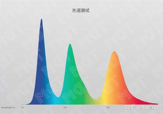 而且蓝光波峰大约在 456nm, 稍微避开了 415nm-455nm 这个对人眼刺激较大的区域,相对于从传统的 LCD 屏幕在蓝光刺激上会有更好的表现。