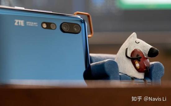 Axon 10 Pro 目前只有一种颜色,类似深蓝和湖蓝之间,在不同的光线下也能展现出不同的效果,相对于渐变色或者其他炫酷的后盖设计要平和很多。后置三摄设计,包含长焦 + 主摄 + 超广角,上方两个大摄像头是 800 万长焦和 4800 万主摄,下方与闪光灯一起的则是 2000 万的超广角摄像头。