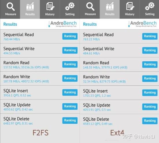 除了 SoC 和 RAM 之外,文件的读取速度也是影响我们日常使用流畅度的重要决定因素,就像 PC 卡顿需要更换固态硬盘一样,Andorid 在早年间由于文件系统的缘故,经常会出现新机的流畅度没有问题,但用了一段时间就就开始卡,这实际上和使用过程中存储的文件越来越多,碎片化导致了实际读取速度的减慢不无关系。
