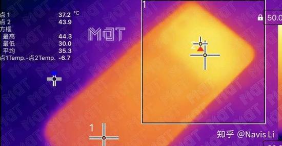 此时机身靠摄像头的一部分温度会明显比另一侧高,差距大概在 7°C 左右,机身背面的最高温达到了 44.3°C, 还是能感受到一些热量的。如果能不开这么高的特效,在 40fps 的帧率限制下,温度表现也会好很多。