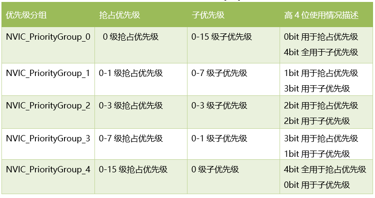 2、 第2个参数PreemptPriority用于设置抢占优先级,范围0 - 15。