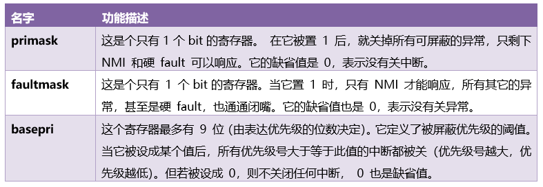__set_PRIMASK就是对寄存器primask做的开关设置,如下表所示: