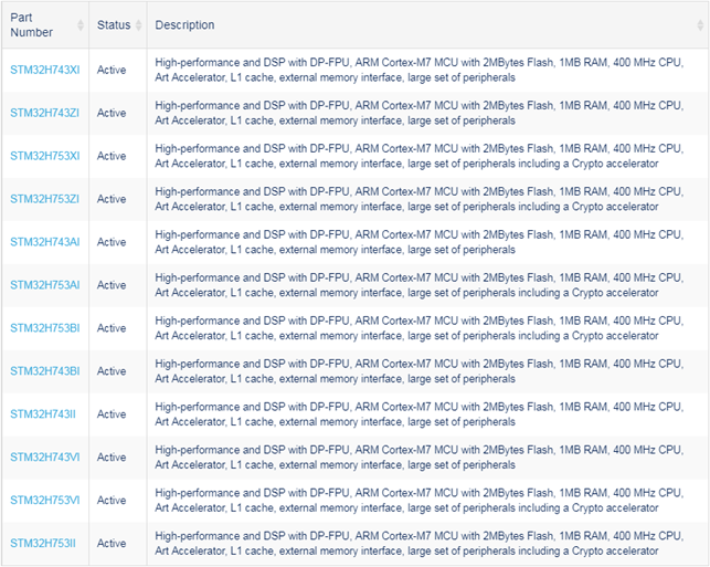 第2步:检索后会弹出所有STM32H7的芯片(随着时间推移,会增加新型号)。