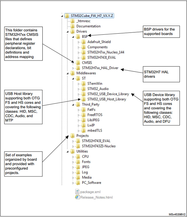 通过上面四步就获取了STM32H7的软件包。软件包的目录结构如下: