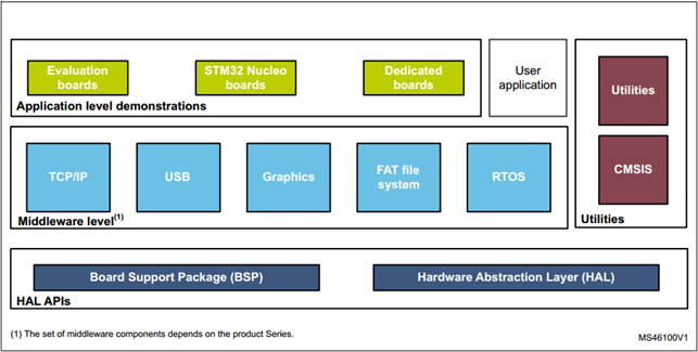 HAL库就包含在大家下载的STM32CubeH7软件包里面。软件包的框图如下: