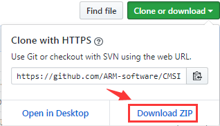 通过GitHub获取也比较方便,地址:https://github.com/ARM-software/CMSIS_5 。点击右上角就可以下载CMSIS软件包了。