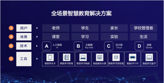 海尔国际智慧教育以“国际引领的智慧教育解决方案商”为定位,以智能学习电脑、智能桌式学习机、智能学习纸笔、智能实验室、智能学生卡、智能学习盒子等七大智能硬件产品为入口,贯穿打通课堂、学习、实验、生活四大应用场景,打造全场景学习模式。