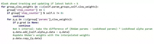 那么显然,要实现 RAdam 加 LookAhead,只需要把原来的 LookAhead 中的 Adam 优化器替换成 RAdam 就可以了。